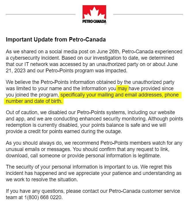 Well, let's just have a look, shall we? A quick search reveals that the Petro-Points program is one of the most popular marketing campaigns in Canada, with over 3 million enrolled customers. That's over 3M potential victims, until further notice.