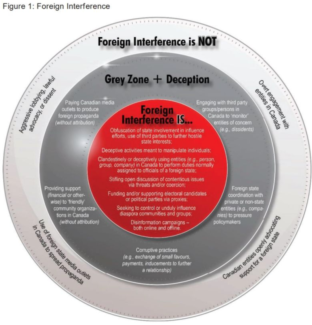 By doing a little digging, I was able to locate extensive documentation on investigative practices into foreign interference published by the Public Inquiry into Foreign Interference in Federal Electoral Processes and Democratic Institutions, a comprehensive examination initiated by the Canadian government to investigate and address the impact of foreign interference on Canada's federal electoral processes and broader democratic institutions. With a broad mandate including different types of espionage and other foreign interference tradecraft, the inquiry included four key areas of focus: