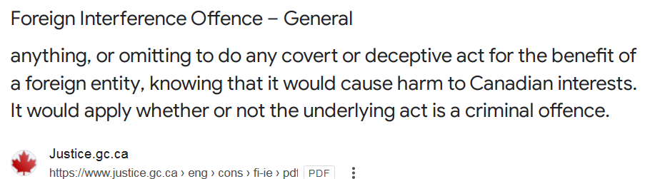 In effect it takes outright disinformation - not propaganda and not misinformation - to finally have someone accused of facilitating or engaging in foreign interference. Such activities include: