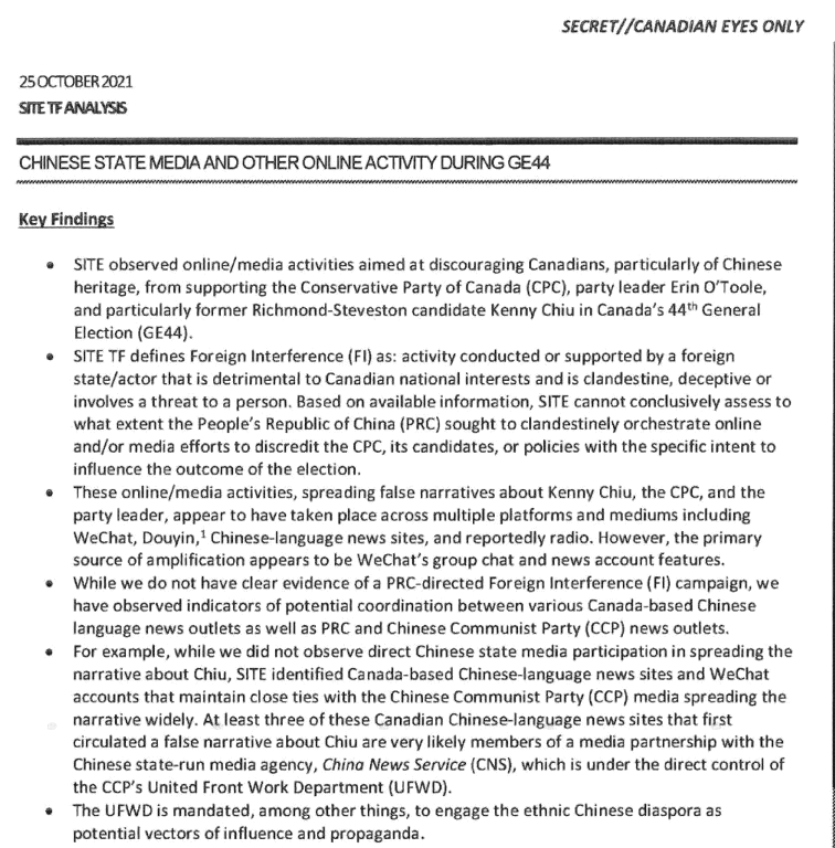 According to a sweeping intelligence report first presented to the Prime Minister and now made public, the National Security and Intelligence Committee of Parliamentarians (NSICOP) shared an impactful overview of the degree of infiltration, corruption and foreign interference, notably among Members of Parliament.