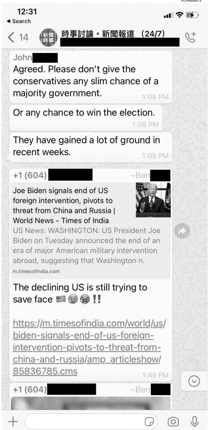 - Use of foreign state media outlets in Canada to spread propaganda.